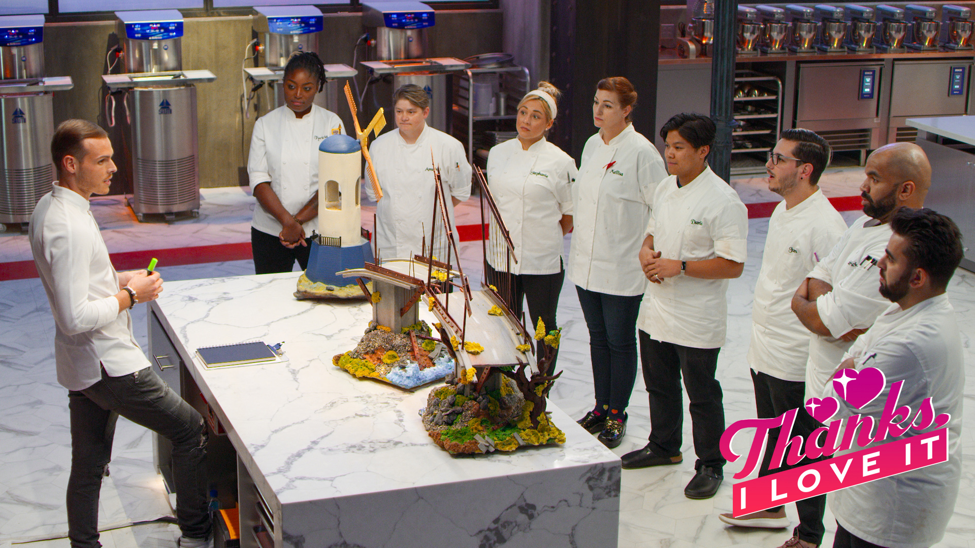 School of Chocolate is a reality competition show that resists the played-outness of previous shows by acknowledging that each competitor is light years away from being as good as the show’s host. That host is chef Amaury Guichon, the internet famous chocolate sculpturist who makes remarkably lifelike chocolate creations and other fantastical desserts. Chef Amaury is a game changer in the world of chocolate sculpting because of his unusual and creative techniques, like using a bucket and saran wrap to create perfect sugar domes or fortifying taller sculptures with load-bearing hollow chocolate cylinders. Many of his techniques are secret, which gave him an advantage in the field until he decided to share his secrets with a selected class of up-and-coming pastry chefs.