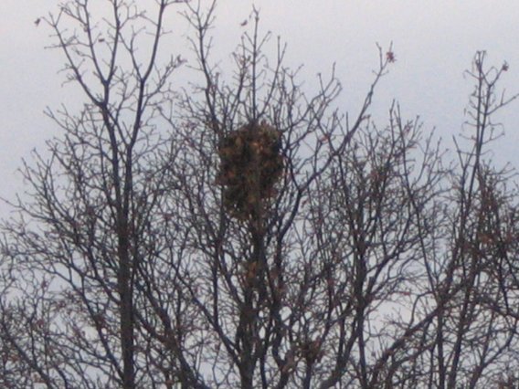 The nest of the Eastern Gray Squirrel, known as the Drey. Image captured on 11/12/06 in Spokane, Washington by Michael J. Wright using a Canon Powershot A85. |