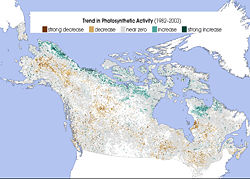 Change in Photosynthetic Activity in Northern Forests 1982-2003 |