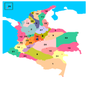 | current | 15:38, 2 February 2006 | 746×993 (36 KB) | Managementboy | (Departments of Colombia, hand drawn, with capitals of each department and numbering according to the common use in Wikipedia. Disclaimer: The borders are very imprecize, as I drew them using a real PD Map as guideline. Made by Elkin Fricke using OpenOff) |