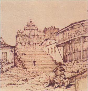 Painting of St. Paul's Cathedral in Macau |