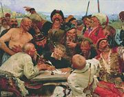 | 04:10, 13 May 2005 | 587×328 (74 KB) | Fanghong | (From en wiki The Reply of the Zaporozhian Cossacks to Sultan of Turkey by Ilya Yefimovich Repin {{Sovietpd}}) |