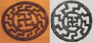Alemannic or Bavarian brooches (Zierscheiben) incorporating a swastika symbol at the centre with a varying number of rays .