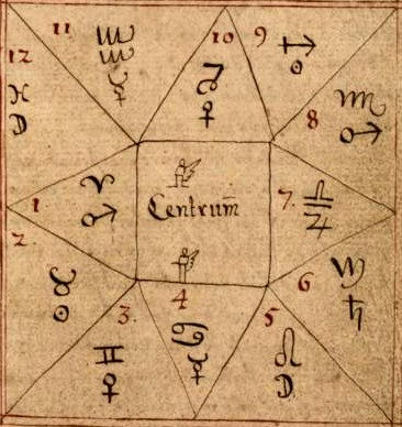 - This is the classical (western) representation for a horoscope, a square divided in twelve houses. This manuscript shows the astrological signs corresponding to each house, and the planet that rules the house (probably by position or by rulin the sign). Micheletb 12:59, 14 August 2006 (UTC)
