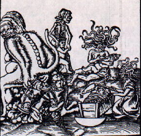 Birth and Origin of the Pope, one of a set commissioned by Martin Luther, artist Lucas Cranach, illustration for Martin Luther's "Against the Papacy at Rome, Founded by the Devil" 1545 |