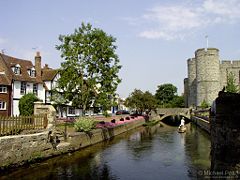 The city is on the River Stour or Great Stour, flowing from its source at Lenham north-east through Ashford to the English Channel at Sandwich. The river divides south east of the city, one branch flowing though the city, the other around the position of the former walls. The two branches rejoin or are linked several times, but finally recombine around the town of Fordwich, on the edge of the marshland north east of the city. The Stour is navigable on the tidal section to Fordwich, although above this point canoes and other small craft can be used. Punts are available for hire in Canterbury.