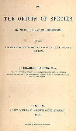 ![]() The title page of the 1859 edition of On the Origin of Species |