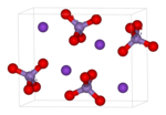 Its crystal structure is orthorhombic with constants: a = 9.105, b = 5.720, c = 7.425 Å. Distance between Mn and O atoms in the tetrahedral anions is 1.629 Å.